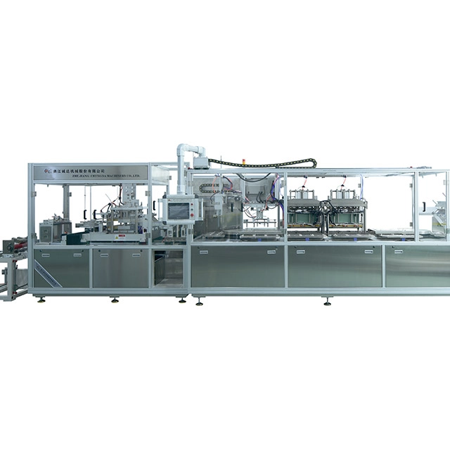 Film melepuh (PVC/PET atau bahan thermoformable lainnya) dikirim ke stasiun pembentuk setelah dipanaskan. Setelah lepuh terbentuk, stasiun pemotongan akan memotong lepuh dari jalur film dengan pisau dalam arah memanjang dan melintang sementara tidak ada sisa bahan. Kemudian lepuh akan diambil dan ditempatkan di palet penyegel dan siap untuk operator memasukkan produk ke dalam lepuh, sistem pengumpanan otomatis dapat dipasang. Kartu belakang akan ditempatkan pada lepuh, pin lokasi pada palet akan membuat kartu berada pada posisi yang benar. Di stasiun penyegelan, lepuh dan kartu akan disegel dengan metode pemanasan. Metode penyegelan atas atau bawah dapat bersifat opsional, hanya tergantung pada spesifikasi bahan pengepakan. Akhirnya, lepuh akan diambil dan dimasukkan ke konveyor keluaran.